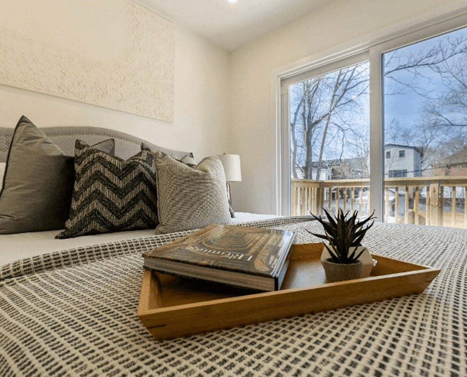 Unwind in thoughtfully designed common lounges or soak in city views from our peaceful rooftop terrace.